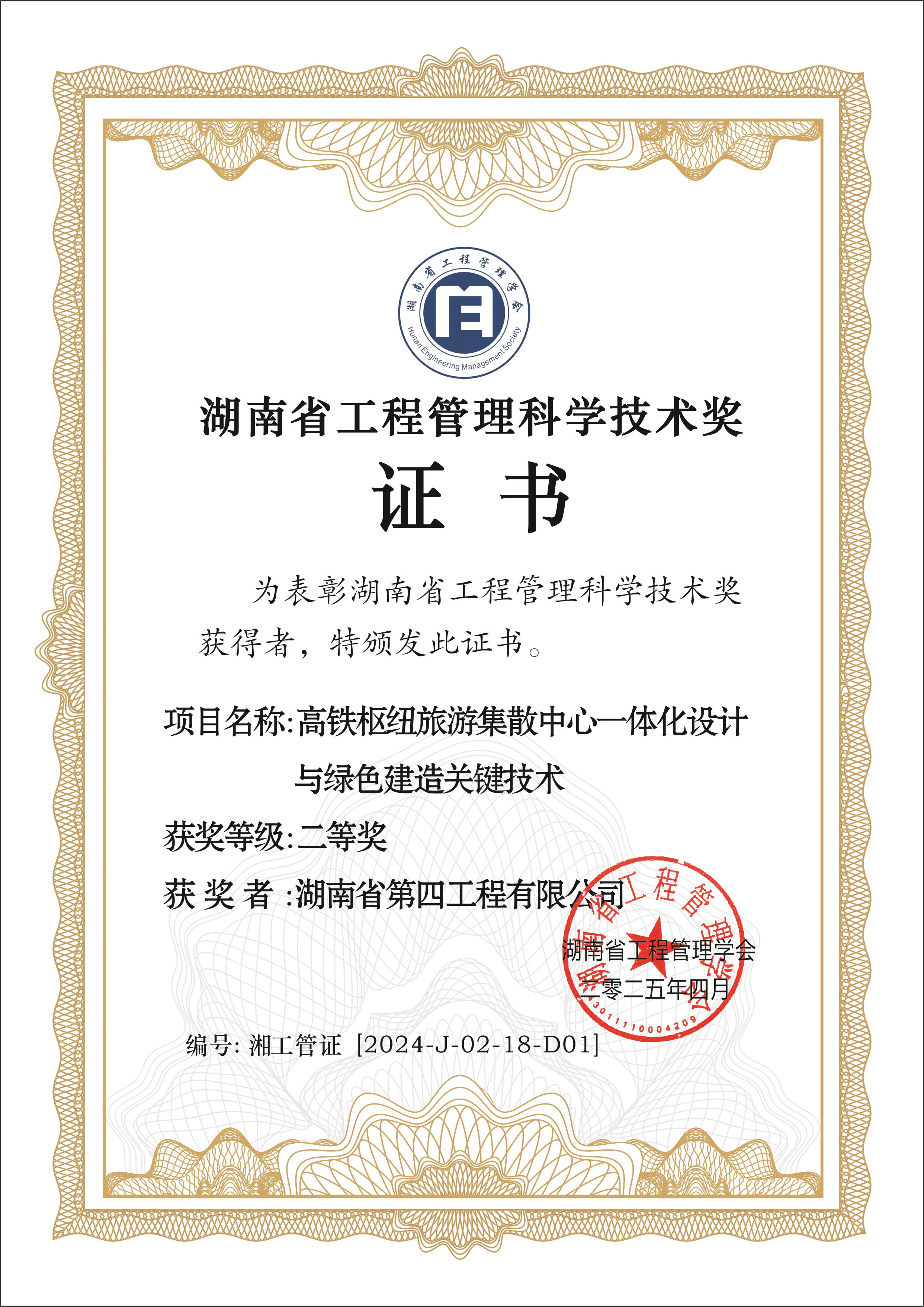 會議頒發(fā)了2024年度湖南省工程管理科學(xué)技術(shù)獎,公司申報的“高鐵樞紐旅游集散中心一體化設(shè)計與綠色建造關(guān)鍵技術(shù)”喜獲二等獎,這是對公司科技水平的高度認(rèn)可與肯定。
